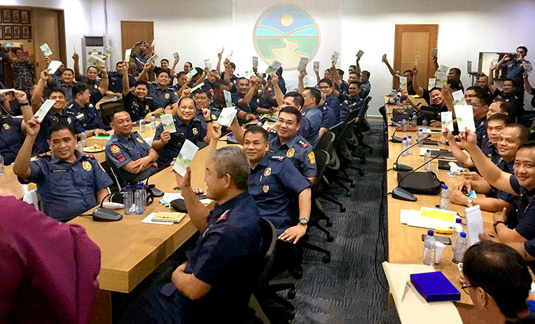 Így de Tagle összefogott Davao rendőrfőnökével, és 45 rendőrnek és munkatársnak megtartotta az első képzési szemináriumot. Egy hónappal később ezek a rendőrök végrehajtották az első füzetosztási tesztprojektjüket, 2000 embert érve el Az út a boldogsághoz füzettel Davao bűnözési gócpontjában – a Bankerohan piacon. Ez azonnal