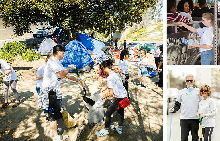 Kelley és férje, Jeff, önkéntesekből álló csapatot gyűjtött, és elkezdtek rendszeres takarítási és Az út a boldogsághoz füzetosztási akciókat szervezni a térségben. Ahogy elmondja: „Fogtunk egy csomó önkéntest, Az út a boldogsághoz pólót húztunk magunkra, telepakoltuk a hátizsákokat füzetekkel, és kivonultunk. A város biztosította a seprűket, a szemeteszsákokat és a lapátokat a takarításhoz.” Ezek a takarítások havi elfoglaltsággá váltak.